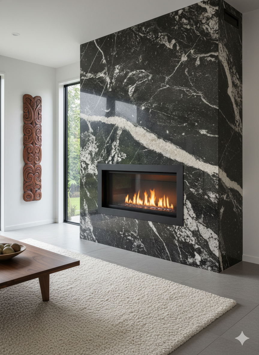 In Metro Detroit homes with traditional architecture, think the classic colonials and Tudors of Grosse Pointe or the brick Craftsman homes of Royal Oak, a Maori Black surround adds a refined, contemporary counterpoint to classic woodwork and molding. In newer construction with modern, open floor plans, it becomes a centerpiece feature that sets the tone for the entire living space.