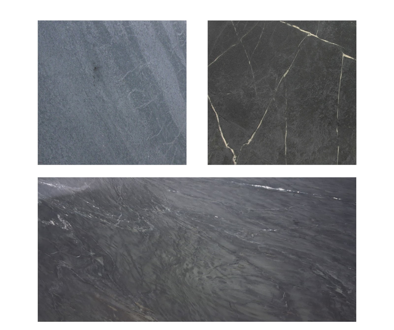 Soapstone is primarily composed of talc, which gives it the soft, silky texture that sets it apart from other stones. Colors typically range from light silver grey to deep charcoal. Many slabs show subtle veining, while others feature bold streaks of white or muted green. These veins often grow more visible as the stone naturally darkens with time.